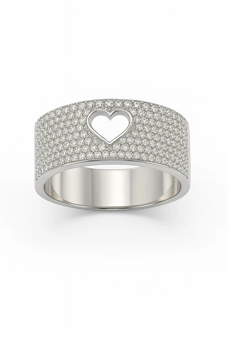 Let love shine through this open heart pavé diamond ring, a golden symbol of affection and light.Each tiny diamond glimmers like a promise, surrounding the heart that stays forever open.